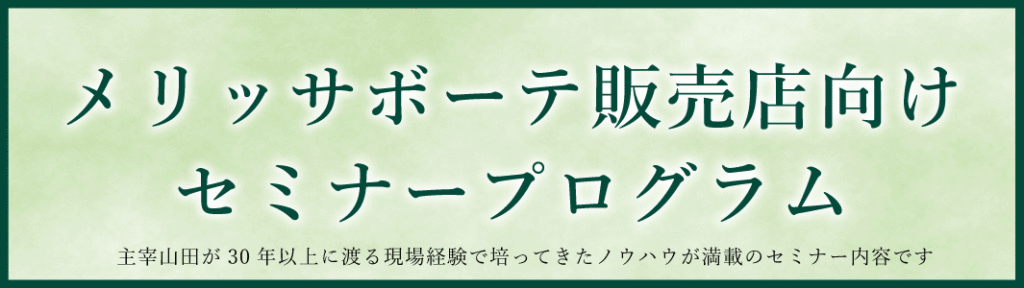 直接販売に携わるプロの方の目利き感で、先ずはメリッサボーテのクオリティをお試しいただきたく存じます。